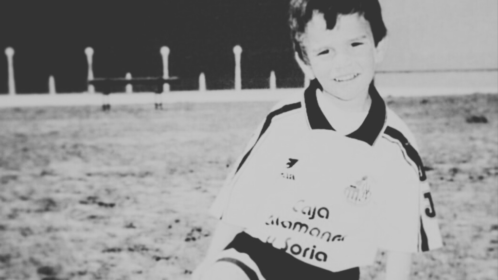 Luego estaba el equipo del pueblo, que en un lugar pequeño, Babilafuente es una población de mil habitantes, no es sólo un equipo. Es una especie de punto de encuentro. Allí empezó también su fútbol organizado, si es que esa palabra cabe del todo en las categorías más tempranas. “Tuve la suerte de poder jugar en el equipo del pueblo desde prebenjamines, con seis o siete años”, explica. “A esa edad jugábamos con chicos un poco mayores y eso es un auténtico privilegio. Poder jugar en el equipo de tu pueblo, con tus amigos, es algo que es verdaderamente único”.